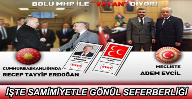 Milliyetçi Hareket Partisi 1. Sıra Bolu Milletvekili Adayı Adem Evcil, seçime saatlere kala açıklamalarda bulunarak vatandanşa çağrı yapıp gönül seferberliği başlattı.
