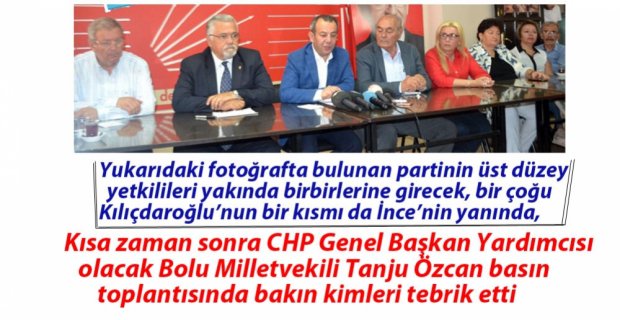 CHP Bolu Milletvekili Tanju Özcan, partisinin il başkanlığında düzenlediği basın toplantısında Ak Parti’den milletvekili olarak seçilen Arzu Aydın ve Fehmi Küpçü kutladı. Özcan, “Şu anda AKP ve MHP birlikte hareket ediyor gibi görünüyor ama ilerde birlikte hareket edeceklerin garantisi yok. Zaten Sayın Bahçeli de ‘Denetim görevini üstleneceğiz. Hükümete girmeye niyetimiz yok’ şeklindeki açıklamaları da bu birlikteliğin çok uzun süreli olmayacağını gösteriyor” dedi.