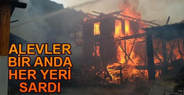 Yangında 2 katlı ahşap ev ile eve ait odunluk kullanılamaz hale geldi.