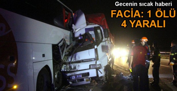Bolu'nun Yeniçağa ilçesinde, TEM Otoyolu'nda arıza yaptığı için emniyet şeridinde duran yolcu otobüsüne kamyonun çarpması sonucu meydana gelen trafik kazasında 1 kişi öldü, 1'i bebek 4 kişi yaralandı.