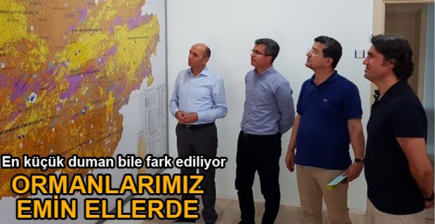 Orman yangınlarına karşı başarının en büyük unsurunun erken müdahale olduğunu belirten Bölge Müdürü Hasan Keskin Yangın Harekât Merkezi’nin son durumu hakkında Bölge Müdür Yardımcısı Ferdi Özer’den bilgiler aldı.