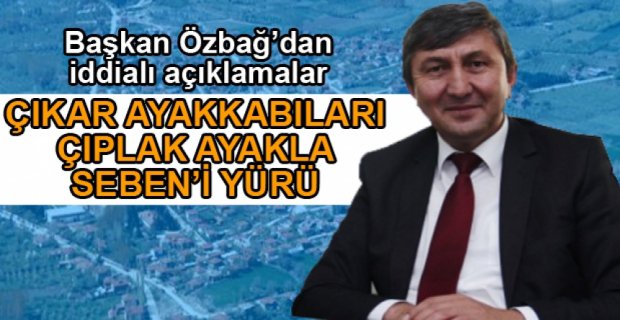 Seben Belediye Başkanı Süleyman Özbağ, “Şöyle bir iddiamız var çıkar ayakkabıları çıplak ayak ile Seben’i yürü” dedi.