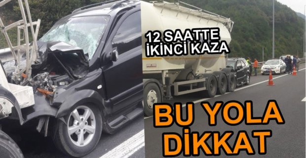Bolu Dağı Tüneli İstanbul istikameti çıkışında 12 saatte ikinci kaza meydana geldi. Havanın yağmurlu olması ve tünelden hızla çıkan araç sürücülerinin direksiyon hakimiyetlerini kaybetmesi sonrasında meydana gelen trafik kazaları peş peşe geldi. Son kaza da ise otomobil arıza şeridinde bekleyen tıra arkadan çarptı.