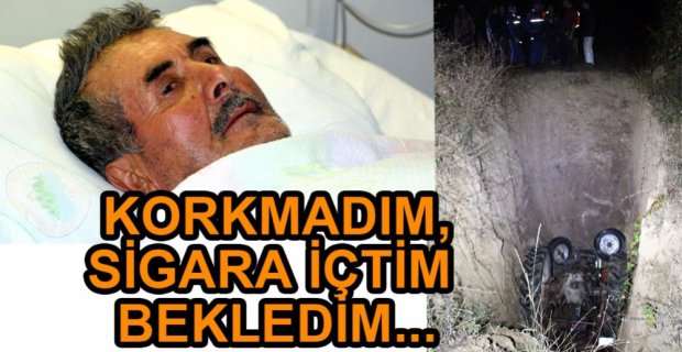 Bolu'da, traktörüyle düştüğü tarladaki 5 metrelik çukurdan 2 gün sonra yaralı kurtarılan 65 yaşındaki Yusuf Öznur, "Hiç korkmadım. Sigara içtim, bekledim. Sağlığım şu anda iyi" dedi.