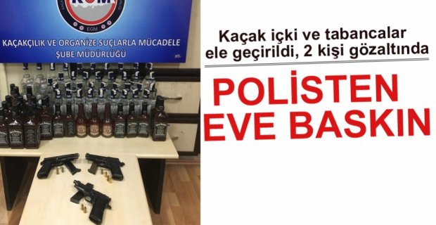 Edinilen bilgiye göre, İl Emniyet Müdürlüğü Kaçakçılık ve Organize Suçlarla Mücadele Şube Müdürlüğü ekipleri, kent merkezinde bir evde kaçak içki depolandığı ihbarı üzerine, belirtilen adrese operasyon düzenledi. Eve yapılan operasyonda 64 şişe kaçak içki, 3 adet ruhsatsız tabanca ve 8 adet tabanca fişeği ele geçirildi.
