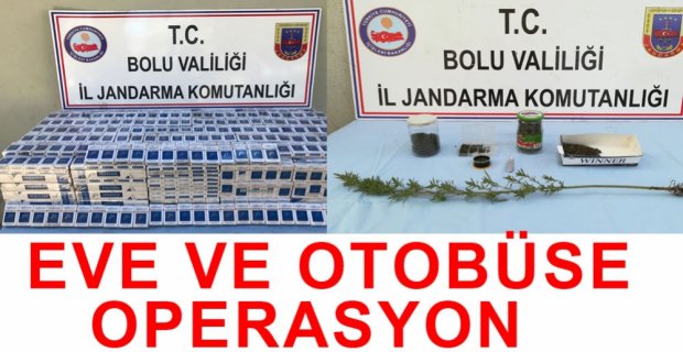 Bolu'da gerçekleştirilen uyuşturucu ve kaçakçılık operasyonları kapsamında 5 bin 545 paket kaçak sigara ile 200 gram esrar ve 1 kök Hint keneviri ele geçirildi.