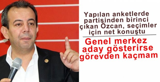 CHP Bolu Milletvekili Tanju Özcan, yerel seçimlerle ilgili olarak, “Genel merkez beni aday gösterirse görevden kaçmam” dedi.