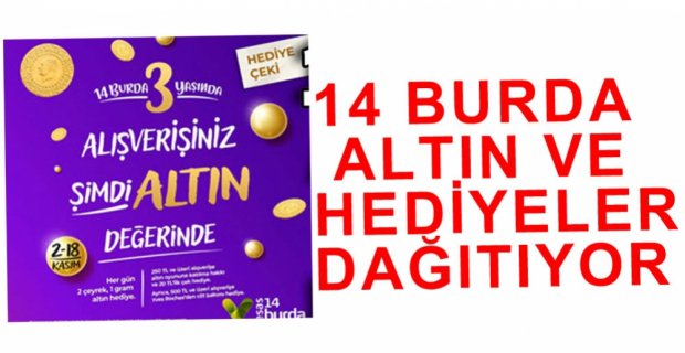 Esas Gayrimenkul tarafından hayata geçirilen, Esas 14 Burda AVM, Bolululara alışverişin tadını doyasıya yaşatıyor. Açıldığı 2015 yılından bugüne Bolu’yu eğlence, yaşam ve buluşma merkezi haline getiren Esas 14 Burda AVM, 2 -18 Kasım tarihleri arasında ziyaretçilerine her gün 2 çeyrek ve 1 gram altın hediye ediyor.