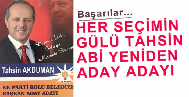 Bolu’da 31 Mart 2019 yerel seçimleri öncesinde hemen hemen her seçimde aday adayı olan AK Partili Belediye Meclis Üyesi Tahsin Akduman partisinden belediye başkan aday adayı oldu.