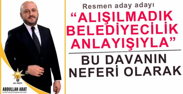 Alışılmamış bir belediyecilik anlayışıyla göreve talip olduğunu söyleyen Abat, “Bunun için Bolulu hemşerilerimizi bir kez daha teşekkürü bir borç biliyorum. Şu andan itibaren Bolu halkımızın görüşleri tek tek alınarak, alışılmamış bir belediyecilik anlayışıyla göreve talip oluyorum. Bu süreç bizim için hayırlı bir başlangıçtır. Benim adaylığım veya başka bir dava arkadaşımızın adaylığı bizim için hiçbir zaman fark etmemiştir, fark etmeyecektir. Biz her zaman kim aday olursa olsun yanında durup, şimdiye kadar yaptığımız gibi destek olmaya, çalışmaya devam edeceğiz” şeklinde konuştu.