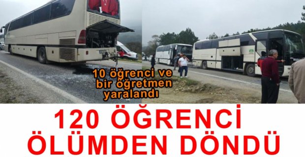 Bolu'da öğrencileri taşıyan gezi otobüslerinin kaza yapması sonucu 11 öğrenci yaralandı.