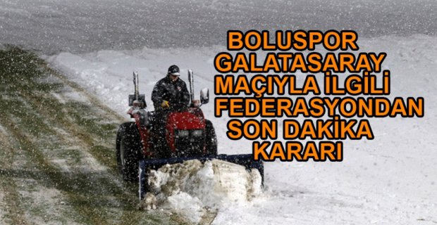 Ziraat Türkiye Kupası’nda kar yağışı nedeniyle ertelenen Boluspor Galatasaray Ziraat Kupası maçının bir gün sonra yani 16 Ocak Çarşamba günü aynı saatte oynanacağı ifade edilmişti ancak federasyon yetkilileri karşılaşmanın daha ileri bir tarihe ertelendiğini açıkladı.