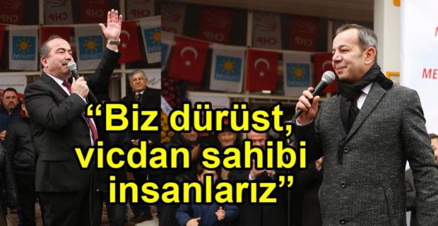 CHP Bolu Belediye Başkan Adayı Tanju Özcan, Mengen CHP Belediye Başkan Adayı Turhan Bulut'un aday tanıtım toplantısına katılarak destek oldu. Özcan yaptığı açıklamada, “Biz yalan söylemeyi bilmeyen, dürüst insanlarız” dedi.