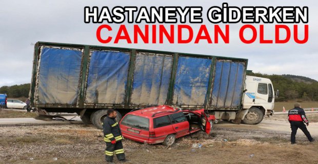 Bolu'nun Mudurnu ilçesinde, hastaneye gidenlerin bulunduğu otomobilin kamyonla çarpışması sonucu bir kişi öldü, bir kişi yaralandı.
