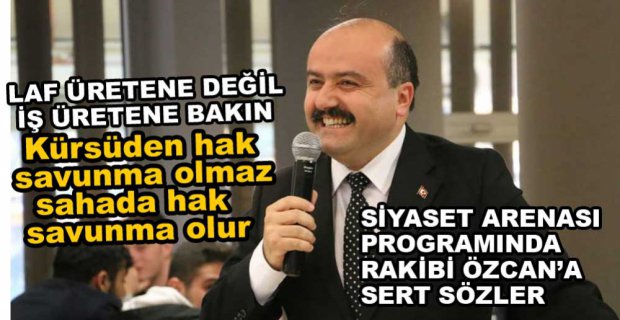 Cumhur İttifakı'nın AK Partili Bolu Belediye Başkan Adayı Fatih Metin, Köroğlu Televizyonu canlı yayınında gazeteciler Caner Güngör ve Bülent Velioğlu'nun sorularını yanıtladı. Metin, rakibi CHP adayı Tanju Özcan'la ilgili, "CHP’nin adayına baktığımızda kürsüden konuşmakla bu işler olmuyor ki. Kürsüden hak savunma olmaz, sahada hak savunma olur. Bolu’ya bir kuruş faydan oldu mu? bir çivi çaktın mı? Bir taş üstüne taş koydun mu? hayır. Eee laf üreten değil iş üretene bakılması lazım" dedi.
