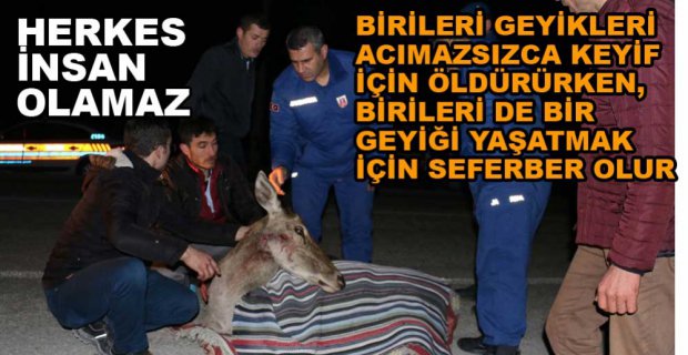 Edinilen bilgiye göre, Mudurnu Taşkesti kara yolunun Kavakaltı mevkisinde araçla seyir halindeki Hakkı Yiğit ve arkadaşları, yolun ortasında yaralı geyik olduğunu gördü.