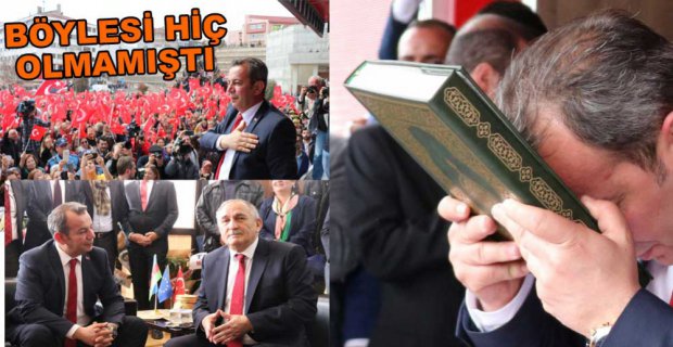 Bolu Belediye Başkanı Tanju Özcan, belediye binasında düzenlenen devir teslim töreninin ardından, binlerce kişinin önünde kutsal kitabımız Kuran-ı Kerim ve Türk bayrağı üzerine tarafsızlık yemini ederek görevine başladı. Binlerce kişinin katıldığı törende coşku tavan yaptı.
