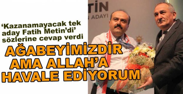 Fatih Metin, Bolu eski Belediye Başkanı AK Parti'li Alaaddin Yılmaz'ın "Bolu'da kazanamayacak tek aday Fatih Metin'di. Bunu teşkilatımıza söylemiştik" şeklindeki sözlerine, "Alaaddin Yılmaz bizim ağabeyimizdir, partimizin kurucusudur. Dolayısıyla geçmişimiz itibariyle, parti disiplini itibariyle şahsımla alakalı söylediklerini Allah'a havale ediyorum. Partimle ve şahsımla alakalı söylemleriyle ilgili olarak da toplumumuzun Bolu kamuoyunun vicdanına havale ediyorum" yanıtını verdi.