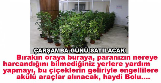 Bolu Belediye Başkanı Tanju Özcan’ın göreve gelmesinin ardından tebrik için gönderilen çiçekler Çarşamba günü satışa çıkartılacak. Başkan Özcan'ın talimatıyla çiçeklerden elde edilecek gelir engelli bireylere akülü sandalye alımı için kullanılacak.