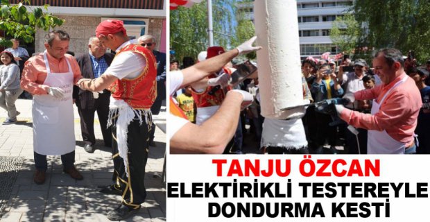 Bolu'da 3 şubesiyle hizmet veren Kahraman Maraş Dondurmacısı işletmelerinin sahibi İsmail Sucu, sezon açılışını vince astırdığı dondurmayı vatandaşa ikram ederek yaptı. Dondurmayı Belediye Başkanı Tanju Özcan elektrikli testere ile kesti.