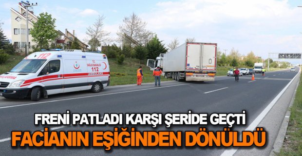 Akaryakıt istasyonundan çıkarak D-100 kara yoluna çıkan tır, akan trafikte yolun karşı şeridine geçti. Karşı şeritte ilerleyen sürücüler ise tıra çarpmamak için yavaşladı. Tır, yol kenarında bulunan yamaca çarparak durdu.