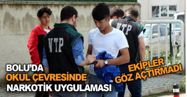Bolu Emniyet Müdürlüğü Narkotik Suçlarla Mücadele Şube Müdürlüğü ekipleri kent merkezindeki okulların önünde uyuşturucu madde satışı ve kullanımını önlemeye yönelik uygulama yaptı. Uygulama kapsamında okul önlerinde bekleyen kişiler ve bazı öğrencilerin çantalarında arama ve kimlik kontrolü yapıldı. Ekipler ayrıca öğrencilere uyuşturucu maddenin zararlarını anlatıp, okul önlerinde gördükleri şüpheli kişileri polise bildirmelerini söyledi.