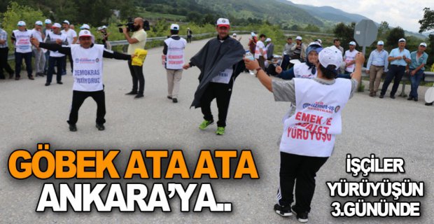 Dün Yeniçağa ilçesine kadar yürüyen ve burada geceyi geçiren işçiler sabah saatlerinde tekrar yürüyüşe geçtiler. Günde ortalama 20 kilometre yürüyen işçiler 22 Haziran tarihinde CHP Genel Merkezi önüne ulaşmayı hedefliyor. Yürüyüş boyunca sloganlar atan ve şarkılar söyleyen işçiler, mola verdikleri yerlerde oyun havası eşliğinde göbek atarak eğleniyor.