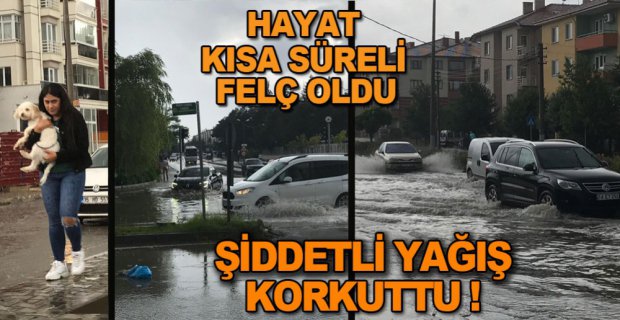 Bolu’da aniden bastıran kuvvetli sağanak hayatı kısa süreli felç etti. Yer yer su taşkınları olurken sürücüler zor anlar yaşadı.