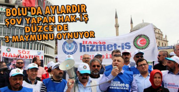 Bolu Belediye Başkanı CHP’li Tanju Özcan’ın seçilmesi ile birlikte siyasi yaklaşarak Bolu’yu şov malzemesi yapan Hak İş’e bağlı Hizmet İş Sendikası, Düzce’de sesini çıkartamıyor. AK Partili Düzce Belediyesinin tüm çalışanları bu Sendikaya üye olmasına rağmen aynı Sendika, Özcan’ın ‘kimseyi işten çıkartmayacağım’ dedikten sonra işe alınan 97 işçiyi işten çıkarttığı için yapmadığını bırakmadı. Tanju Özcan bu işçilere yeni iş imkanı sağladı ama Sendika işçilerin başka işe başlamasına bile izin vermedi.