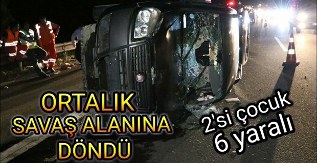 Anadolu Otoyolu’nun Bolu kesiminde devrilen hafif ticari aracın tankere çarpması sonucu 2’si çocuk 6 kişi yaralandı.