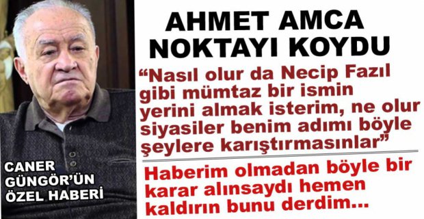 Necip Fazıl Kısakürek tarihimizde şair olarak güzel yer almış bir isim. Ben nasıl olurda böyle bir şeyi kabul edebilirim. Bu beni bilhassa üzer. Mesela benim haberim olmadan böyle bir karar alınmış olsaydı ben ‘hemen kaldırın bunu’ derdim” diyerek son noktayı koydu.
