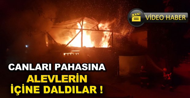 Bolu'nun Çakmaklar Mahallesinde Vedat Yirmibeşlioğlu’na ait samanlık ve ahır alev alev yandı. İtfaiye erleri yangını kontrol almak için çökmek üzere olan binanın içine daldı.