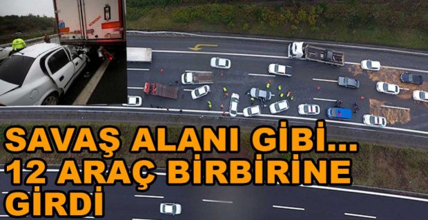Düzce'de, TEM otoyolu Gümüşova rampalarında 1 tır, 1 minibüs ve 10 otomobilin karıştığı zincirleme trafik kazasında 3 kişi yaralandı.