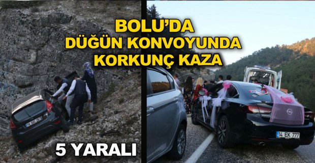 Bolu‘da düğün konvoyundaki otomobilin yoldan çıkarak kayalıklara çarpması sonucu 5 kişi yaralandı.