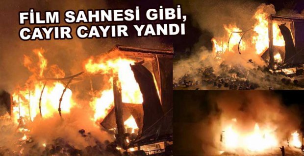 Bolu’da TEM Otoyolu’nda seyir halinde olan tekstil malzemesi yüklü tır çıkan yangında alev alev yandı.
