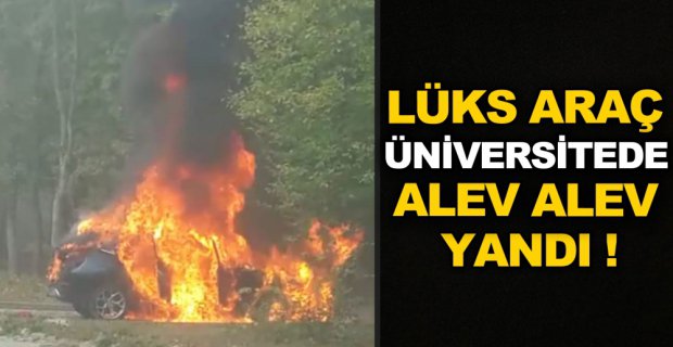 Bolu Abant İzzet Baysal Üniversitesi Gölköy Kampüsünde rektörü ziyaret için gelen bir kişiya ait lüks cip yandı.