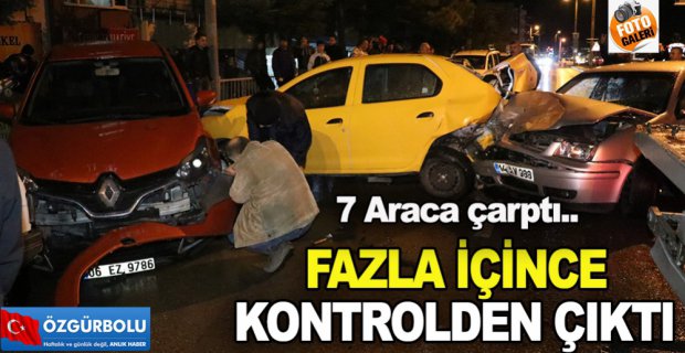 Bolu’da, alkollü bir şoförün kullandığı otomobil, park halindeki 7 araca çarptı. Otomobil sürücüsüne bir şey olamazken, yanındaki sürücü yaralandı.