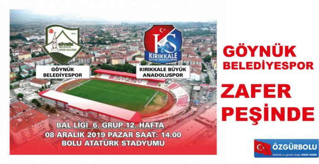 Bolu’yu Bal Ligi’nde temsil eden ve başarılı işlere imza atmak isteyen Göynük Belediyespor, kendi evinde lider Kırıkkale Büyük Anadoluspor’u ağırlıyor. Zorlu maça mutlak galibiyet ile çıkan Göynük Belediyespor lideri puansız göndermek istiyor.