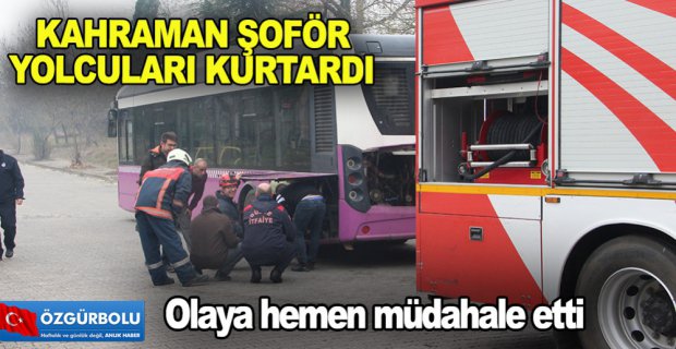 Düzce’nin Kalıcı Konutlar Bölgesinde seyir halindeki otobüsten dumanların yükseldiğini gören şoför yolcuları indirdikten sonra aracın motor kısmından çıkan dumanlara yangın söndürme tüpü ile müdahale ederek yanmaktan kurtardı.
