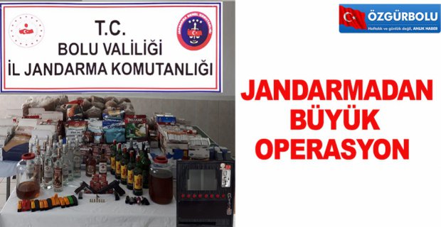 Edinilen bilgiye göre, İl Jandarma Komutanlığı ekipleri, Bolu’nun Yeniçağa ilçesinde, farklı adreslerde ruhsatsız tabanca ve kaçak alkollü içecek bulunduğu yönünde istihbarat aldı. Gelen bilgileri değerlendiren Jandarma ekipleri Yeniçağa’da bulunan 3 ayrı iş yeri ve 1 eve operasyon düzenledi. Yapılan operasyon sonucunda ev ve iş yerlerinde 1 adet ruhsatsız tabanca, 1 adet kuru sıkı tabanca, 217 adet tabanca fişeği, 9 adet kuru sıkı tabanca fişeği, 1 adet oyun makinesi, 15 litre kaçak bandrolsüz viski, 17 litre kaçak votka, 3 litre kaçak şarap, 128 kilogram kıyılmış tütün, 3 kilo 610 gram puro tütünü, 29 bin 700 adet dolu makaron, 14 adet sigara doldurma aparatı, 307 adet kilitli şeffaf poşet ele geçirilirken, olayla ilgili 4 kişi hakkında yasal işlem başlatıldı.