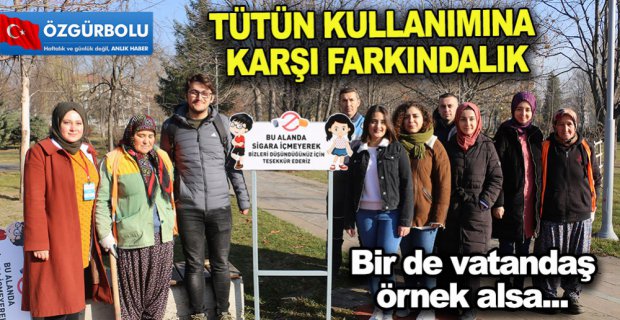 Bolu’nun en büyük parkı olan Atatürk Orman Parkı’nda tütün kullanımını engellemek ve toplumda farkındalık oluşturmak amacıyla üniversite öğrencileri ve Bolu Belediyesi işbirliğine giderek, parklarda uyarıcı tabela uygulamasına gitti. Gençler, halk sağlığı dersi kapsamında, Atatürk Orman Parkı’na gelerek, kendilerine eşlik eden belediye yetkilileriyle birlikte birçok noktaya uyarıcı tabelalar astılar. Üzerinde “Bu alanda sigara içmeyerek bizleri düşündüğünüz için teşekkür ederiz” yazılı tabelalar vatandaşlardan da büyük destek gördü.