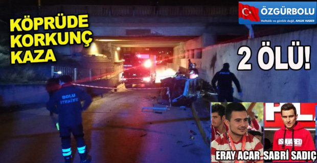 Kaza, saat 23.45 sıralarında Kuruçay mahallesinde meydana geldi. Kent merkezi istikametinden Ankara yönüne giden 14 AAP 967 plakalı otomobil, hızla Kuruçay köprüsü yanındaki yan yola girdi. Hızla giden otomobil köprünün korkuluklarının yanından alt geçide uçup yaklaşık 15 metre uzaklıktaki duvara çarptı. Kazanın ardından olay yerine 112 Acil, itfaiye ve polis ekibi sevk edildi. Kazada hurdaya dönen araç içerisinde sıkışan Eray Acar ile Sabri Sadıç olay yerinde hayatını kaybetti.