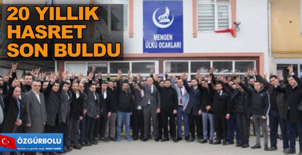 Bolu’nun Mengen İlçesi’nde 20 yıldır kapalı olan Mengen Ülkü Ocakları, 19 Ocak Pazar günü Bolu Ülkü Ocakları Başkanı İsmail Akgül’ün katılımıyla gerçekleşen tören sonrası faaliyetlerine kaldığı yerden devam etmeye başladı.