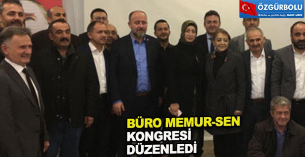 Büro Memurları Sendikası (Büro Memur-Sen) Bolu Şubesi Kongresi, Bolu’da hizmet veren bir otelde düzenlendi. Kongrede tek liste halinde yapılan seçimde, Şube Başkanı Erhan Yüceer, tekrar Büro Memur-Sen başkanlığına seçildi.