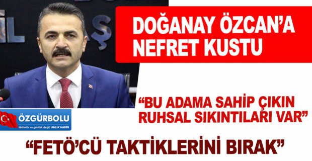 Ak Parti İl Başkanı Nurettin Doğanay, İl Danışma Meclisi’nde yaptığı açıklamada Bolu Belediye Başkanı Tanju Özcan için, “Yine bir Tanju Özcan klasiği ile karşı karşıyayız. Yitip bitmek bilmeyen iftiralar, yalanlar ve çamur atmalar ve algı operasyonları. Artık bu FETÖ’cü taktiklerini bırak. Kendisine ve doktoruna sesleniyorum, bu adama sahip çıkın ruhsal sıkıntıları var” ifadelerini kullandı.