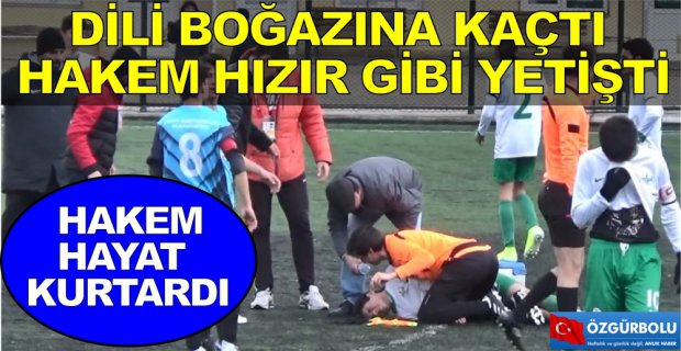 Bolu’da, geçtiğimiz hafta sonu oynanan U-17 ligi Play-Off maçında Elvan İnşaat Kızıkspor ile Çağsu Hastaneleri Aladağspor karşı karşıya geldi. Karşılaşmanın ikinci yarısında Kızıkspor oyuncularından Oğuzhan Terkeş hava topu mücadelesinde rakibiyle çarpıştı. Çarpışmanın etkisiyle yere yığılan Terkeş’in dili boğazına kaçarak baygınlık geçirdi. Karşılaşmada yan hakem olarak görev yapan ve aynı zamanda Mudurnu ilçesinde aile hekimi olan Selim Göksu, yerde yatan oyuncunun yanına giderek ilk müdahaleyi yaptı. Oyuncunun dilinin boğazına kaçtığını gören Göksu, oyuncuyu yan çevirerek dilini dışarı çıkarmayı başardı. Göksu’nun yaptığı ilk sağlık kontrollerinin ardından Terkeş, ambulansla İzzet Baysal Devlet Hastanesi Köroğlu Ünitesine kaldırıldı.
