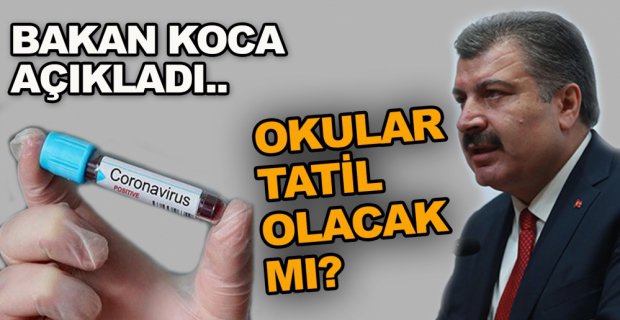 Sağlık Bakanı Fahrettin Koca, corona virüsün Türkiye'de olma ihtimalinin yüksek olduğunu açıklamıştı. Bu açıklamanın ardından Okullar tatil edilecek mi? Sorusu akıllara takıldı. Sağlık Bakanı Koca, okulların tatil edilip edilmemesiyle ilgili Milli Eğitim Bakanlığıyla önümüzdeki günlerde görüşüleceğini bildirdi.