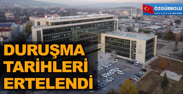 Çin'de ortaya çıkan ve tüm dünyayı etkisi altına alan corona virüsü salgını nedeniyle alınan tedbirler kapsamında Bolu Adliyesi'nde görülecek olan duruşmalar ertelendi. Acil durumlar dışında faaliyet göstermeyecek olan mahkemeler, 16 Mart tarihi itibariyle duruşmalara kapatıldı. Bolu merkez ve mülhakat adliyelerinde 16-27 Mart 2020 tarihleri arasındaki duruşma, keşif, talimatlar ve benzeri adli faaliyetlerin (tutuklu ve ivedi işler hariç) yaşanacak gelişmeler doğrultusunda yeniden değerlendirmek üzere ertelenmesi yönünde karar alındı.