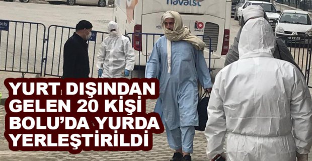 49 yolcunun karantinaya alındığı Bolu’ya Pakistan’dan getirilen 20 kişi daha eklendi. Bu gün saat 15.00 sularında Bolu’ya ulaşan yaklaşık 20 kişi de Bolu Abant İzzet Baysal Üniversitesinin Gölköy Yerleşkesi'ndeki Hayreddin Tokadi Öğrenci Yurdu'na yerleştirildi.