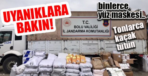 Bolu İl Jandarma Komutanlığı, yol emniyet ve kontrol devriyesi esnasında alınan istihbarat üzerine, Dörtdivan İlçesi Metro Dinlenme Tesisleri Mevkiinde iki kamyonu durdurdu. Kamyonlarda yapılan aramada, 3 ton 91 kilo belgesiz ve faturasız kaçak tütün, 60 kilo belgesiz ve faturasız kaçak pipo tütünü, 2 bin 170 paket bandrolsüz kaçak sigara ve 4 bin adet cerrahi yüz maskesi ele geçirildi.